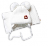 Dětská zimní čepice s šálou STAR - bílá s bambulkami; 56-68 (0-6 m)