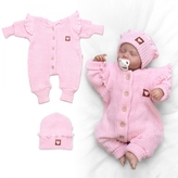 Rostoucí pletený oversize overálek + čepička Love s volánkem, růžový; 56/62 (0-3m)