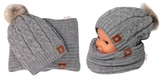 Zimní dvouvrstvá čepice s bambulí + komínek Star, šedá; 104/110 (3-5r)