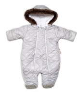 Kombinézka s kapuci a kožešinou Lux Baby Nellys®prošívaná/kostičky - sv. šedá; 56 (1-2m)