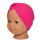Baby Nellys Hand Made Bavlněná čelenka - dvouvrstvá, tm. růžová s kamínky, 104/116