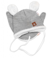 Baby Nellys Pletená zimní čepice s kožíškem a šátkem Star, šedá; 56/62 (0-3m)