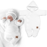 Zimní pletená kombinézka/overálek s kapucí Baby Nellys - bílá, vel. 62; 62 (2-3m)