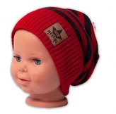 Podzimní/zimní proužkovaná čepice - červená/grafit; 116 (5-6r)