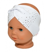 Baby Nellys Hand Made Bavlněná čelenka - dvouvrstvá, bílá s kamínky, 104/116
