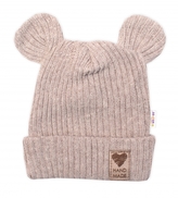 Pletená bavlněná čepice s oušky, dvouvrstvá, Hand Made Baby Nellys, béžová, vel. 80/86; 80/86 (12-18m)