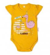 Baby Nellys Bavlněné kojenecké body, kr. rukáv, Flamingo - hořčicové, vel. 86; 86 (12-18m)