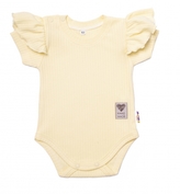 Baby Nellys Bavlněné žebrované body s volánkem, kr. rukáv, Summer Girl - žluté, vel.74; 74 (6-9m)