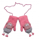 Zimní rukavičky se šňůrkou a kožíškem, Ovečka, Baby Nellys, růžové, 98/104, 13cm; 98-104 (2-4r)