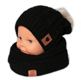 BABY NELLYS Zimní dvouvrstvá čepice s bambulí + komínek Love, černá; 104/110 (3-5r)