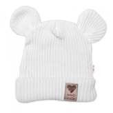 Pletená bavlněná čepice s oušky, dvouvrstvá, Hand Made Baby Nellys, bílá, vel. 68/74; 68/74 (6-9m)