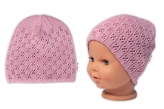 Ažurková čepice, dvouvrstvá, bavlna, Baby Nellys - starorůžová, pudrová, vel. 92/98; 92/98 (18-36m)