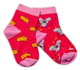Baby Nellys Bavlněné veselé ponožky Myška a sýr - tmavě růžová; 92/98 (18-36m)
