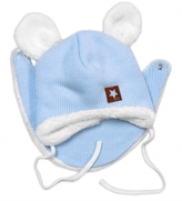 Baby Nellys Pletená zimní čepice s kožíškem a šátkem Star, modrá, vel. 68/74; 68/74 (6-9m)