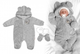 Chlupáčkový overal Luna s kapucí + rukavičky, Baby Nellys, Medvídek, sv. šedý, vel. 74/80; 74/80 (9-12m)