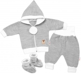 3-dílná souprava Hand made, pletený kabátek, kalhoty a botičky, šedá, vel. 62; 62 (2-3m)