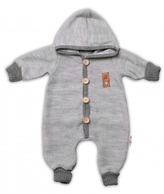 Pletený overálek s kapucí Hand Made STAR, Baby Nellys, šedý, vel. 80/86; 80/86 (12-18m)