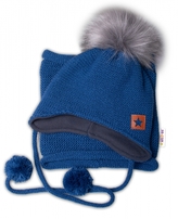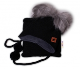 Zimní čepice s fleecem a chlupáčkové bambulky Star + komínek - černá, BABY NELLYS; 68-86 (6-18m)