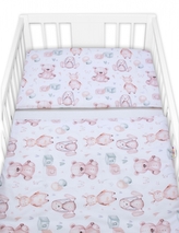 Povlečení do postýlky, bavlna, 2D sada, Veselé hračky, bílá/hnědá; 120x90