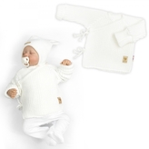 Kojenecký svetřík, rostoucí, na zavazování na boku - bílá; 50/56 (0-2m)