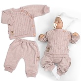 Rostoucí pletený svetřík a kalhoty s kapsou Hand Made 2D, Nature, pudrově růžová, 68/74; 68/74 (6-9m); pudrově růžová; akryl, bavlna