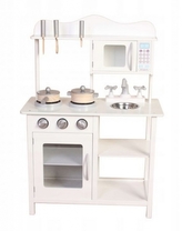 Eco Toys Dřevěná kuchyňka s příslušenstvím, 101 x 60 x 27 cm - bílá
