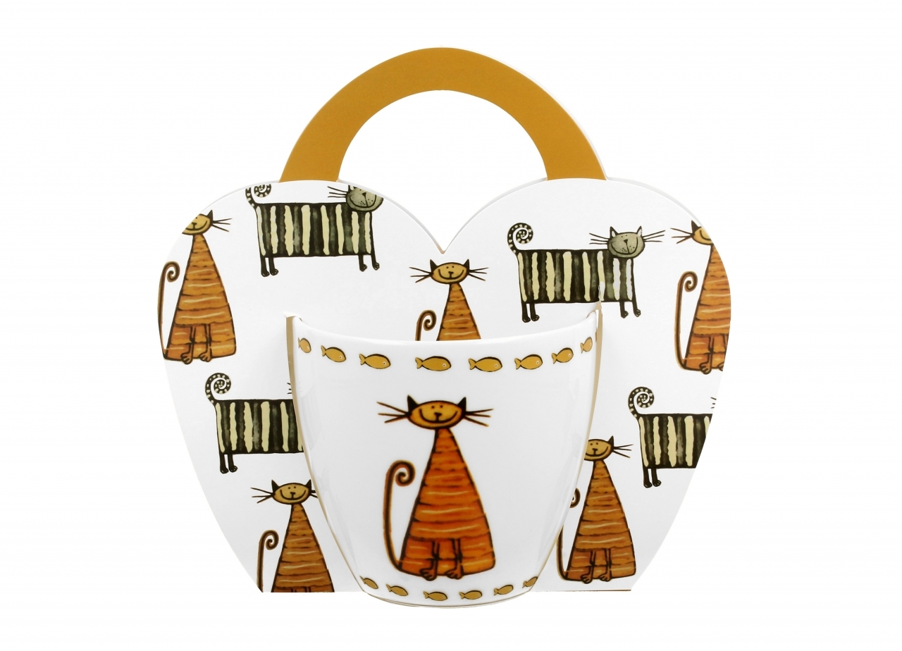 Porcelánový hrnek Classic cats 460 ml v papírovém košíku