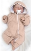 Mušelinový overálek s kapucí, dvouvrstvý, Hand Made, béžový, vel. 62; 62 (2-3m)