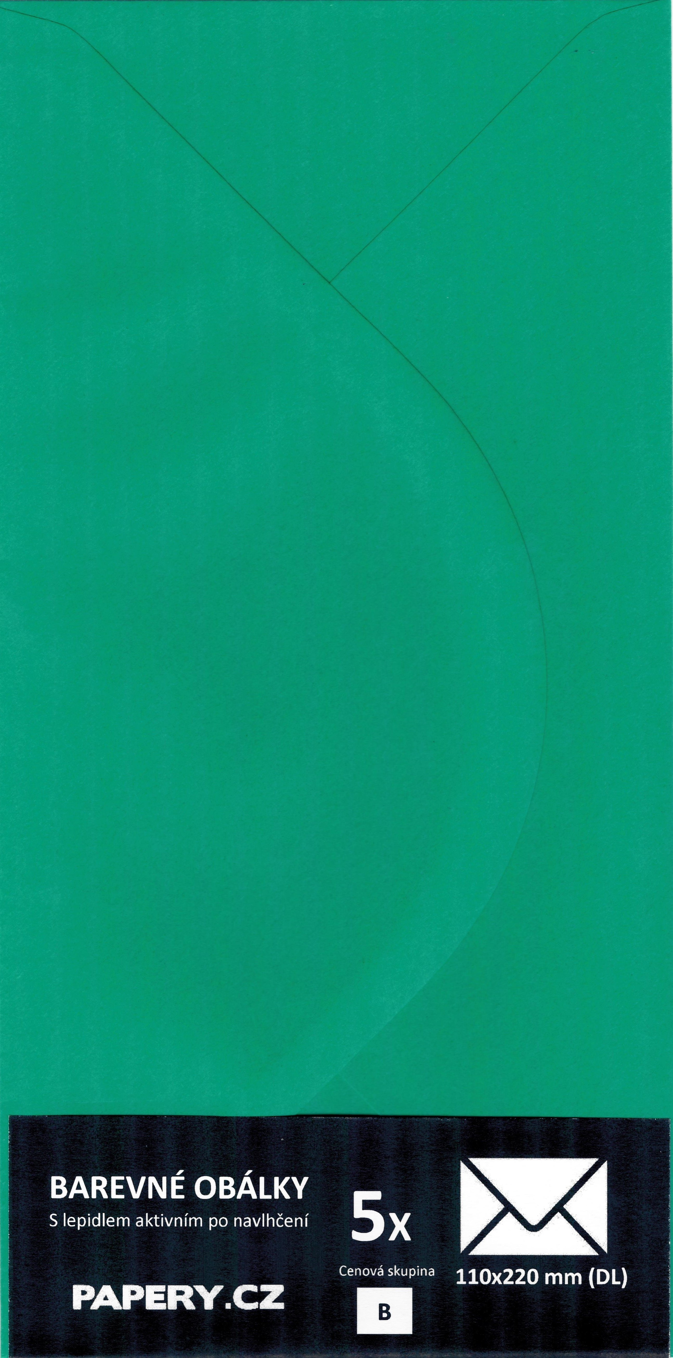 barevná obálka 110x220 mm ZELENÁ VÁNOČNÍ, 5 kusů,110 gm2, olizová