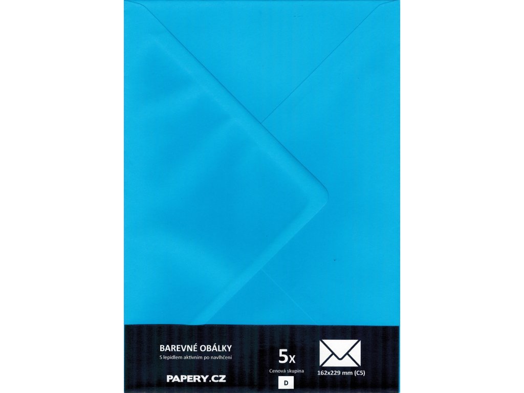 barevná obálka 162X229 mm MODRÁ NEBESKÁ, 5 kusů,110 gm2, olizová