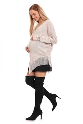 Be MaaMaa Těhotenské pončo dlouhý rukáv - béžové, vel. L/XL; L/XL