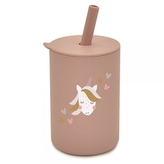 Silikonový hrnek s brčkem Jednorožec, 150 ml - pudrový