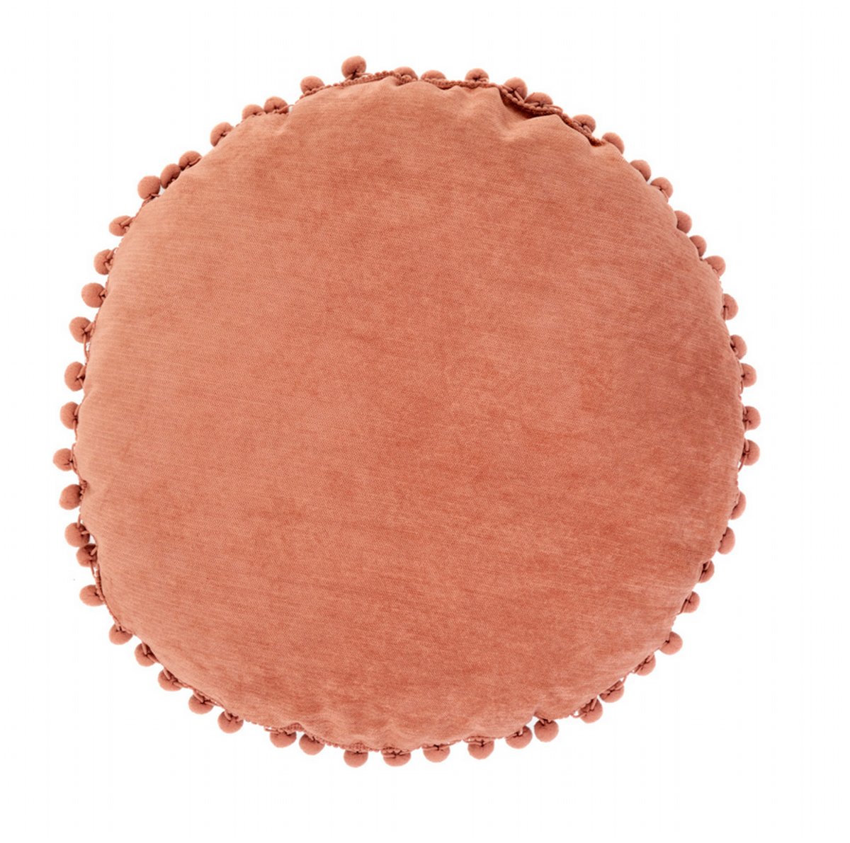 Dekorační polštář s výplní ESLOV | cihlová s bambulkami kulatý | 40 cm | 883670 Homla