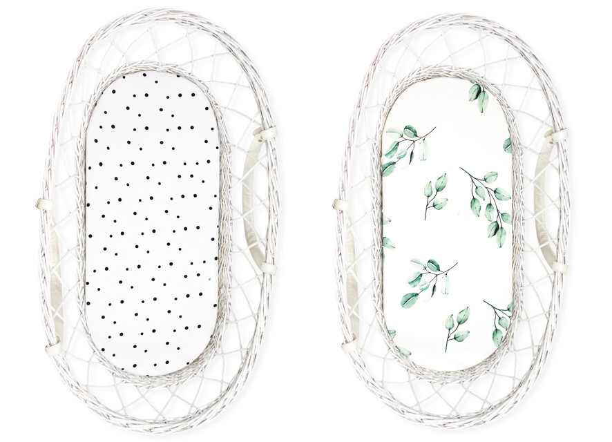 Prostěradlo Sleepee We Care do kočárku, košíku a kolébky černé tečky/eukalyptus