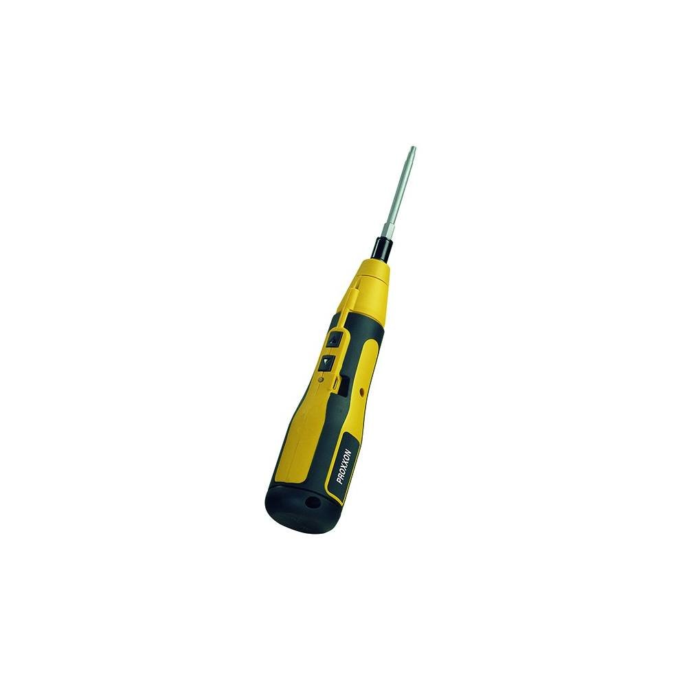 Aku šroubovák na standardní 1/4“ bity (6,3mm). Jednoduchý postup ve 2 krocích. Nejdříve zmáčknutím tlačítka šroub uchytíme a přitáhneme a následně, díky „samo-uzamykatelnému“ mechanismu, ručně dotáhneme dle požadavků silou až 5Nm. Silný magnetický držák zajistí, že bit nevypadne a šrouby na něm...