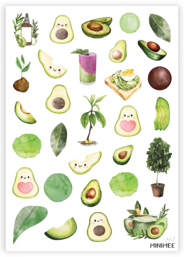Piękne wycinane naklejki na arkuszu A5 z motywami awokado.Wyprodukowano w Czechach. przeczytaj całość