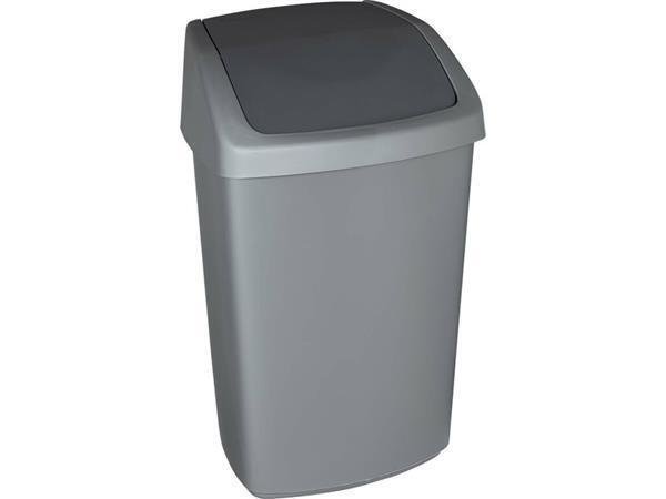Odpadkový koš s výklopným víkem "Swing top", stříbrná-grafitová, 50 l, CURVER 167909