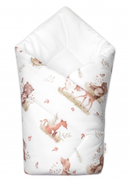 Kojenecká Zavinovačka klasik Roztomilá zvířátka, bílá/hnědá