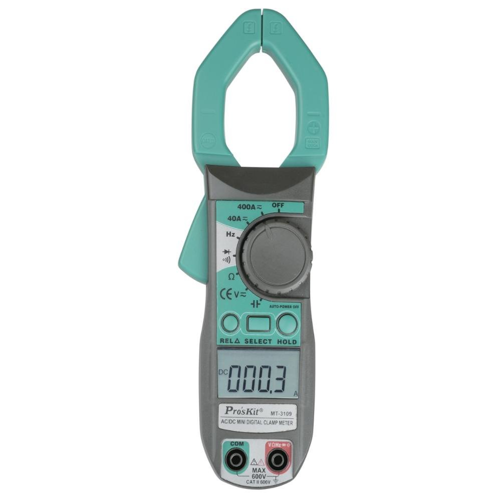 Digitání klešťový multimetr.Vlastnosti:3 a3/4 místný displej (3999)Rozevření čelistí 30mmAutomatická volba rozsahůOchrana proti přetíženíFunkce DataHoldMód spánkuNapětí DC: 0..600V (+-1%)Napětí AC: 0..600V (+-1,5%)Proud DC: 400A (+-2,5%)Proud AC: 400A (+-3%)Odpor: 40MOhm (+-1,5%)Frekvence: 1MHz...