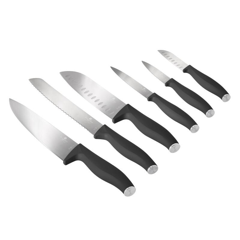 Materiál: Materiál: nerezová ocel 3cr13Kuchařský nůž 20 cmNůž na chléb 20 cmNůž Santoku 17,5 cmUžitkový nůž 12,5 cmNůž na okrajování 9 cmNůž Santoku 9 cmMagnetická dárková krabičkaBarva: antracitvysoce kvalitní nerezová ocelTepelně zpracovaná čepelErgonomická rukojeť měkká na dotekOchrana... przeczytaj całość