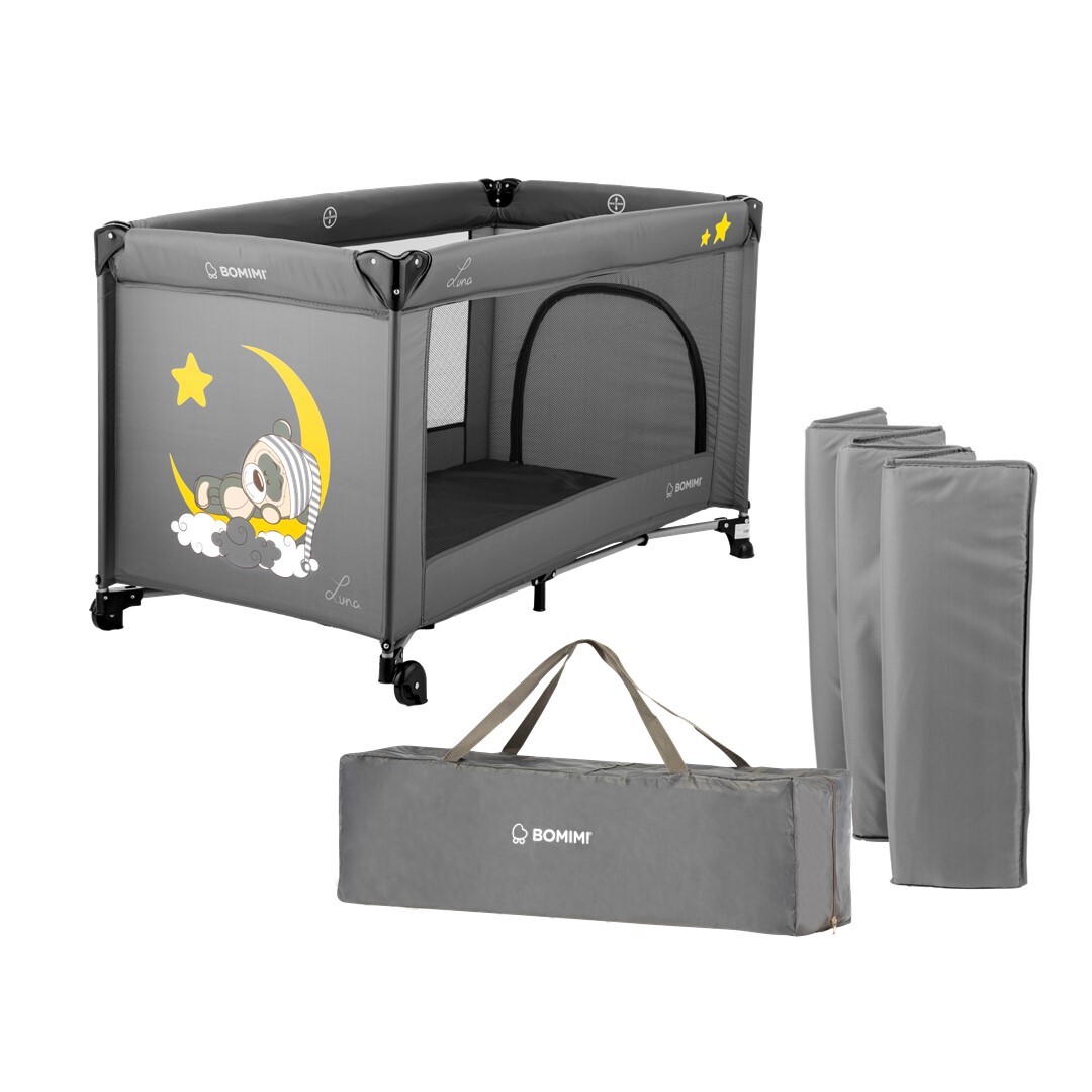 Łóżeczko turystyczne LUNA - idealne do domu u babci i na wakacje...DANE TECHNICZNE: Odpowiednie dla dzieci od urodzenia do 36 miesięcy o wadze do 15 kg. Waga / łóżeczko: 7,85 kgWymiary: Wymiary rozłożonego łóżeczka (cm): wewnętrzne: szer.60*dł.120 zewnętrzne: szer.65*dł.125*wys.74 Wymiary złożonego łóżeczka (cm): 22*22*74 Pokrycie: 100% poliester CECHY: Łóżeczko turystyczne z delikatnym nadrukiem to niezastąpiony pomocnik w podróży i w domu. Łatwo się rozkłada i składa. W zestawie znajduje się wbudowany materacyk i torba podróżna. Łóżeczko wyposażone jest w dwa praktyczne kółka ułatwiające przemieszczanie. Łóżeczko ma bok na zamek błyskawiczny, aby dziecko mogło wygodnie wejść do środka i wychodzić z łóżeczka. Czarna siatka zapewnia lepszy kontakt wzrokowy z Twoim dzieckiem. Łóżeczko wyposażone jest w zabezpieczenie przed przypadkowym złożeniem.