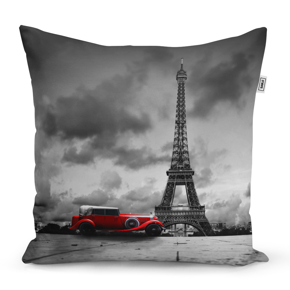 Polštář Eiffelova věž a červené auto: 50x50 cm