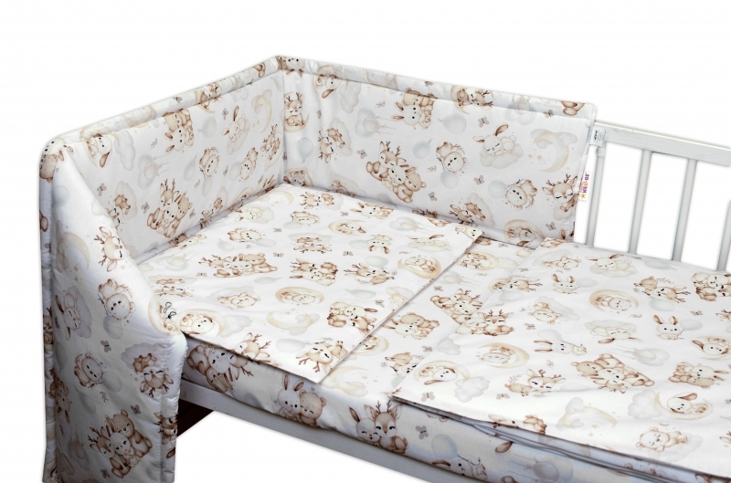 Mantinel s povlečením do postýlky, 3D sada - Sny zvířátek, bílá/hnědá; 120x90