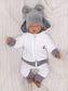 Z&Z Velurová, semišková tepláková souprava TEDDY s oušky - bílá, šedá, vel. 62; 62 (2-3m)
