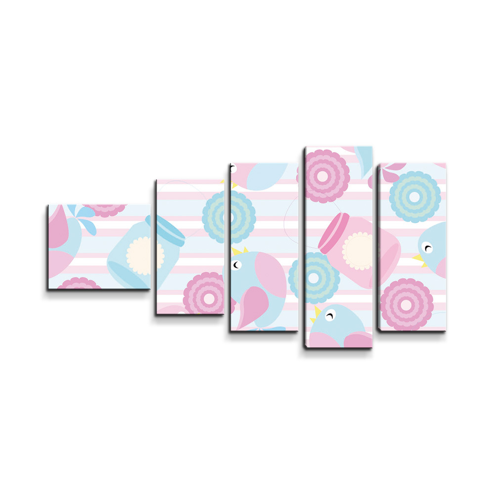 Obraz - 5-dílný Roztomilí ptáčci: 100x60 cm