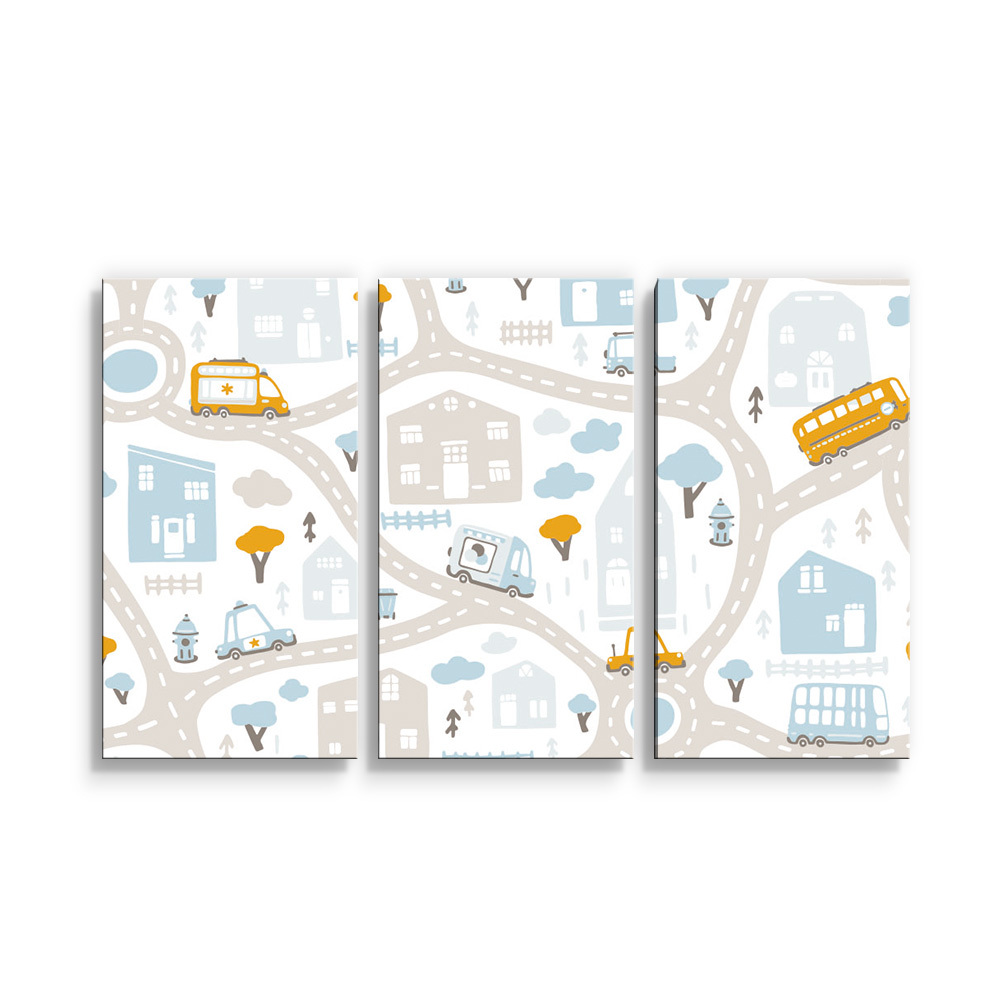 Obraz - 3-dílný Cestičky s dopravou: 120x80 cm