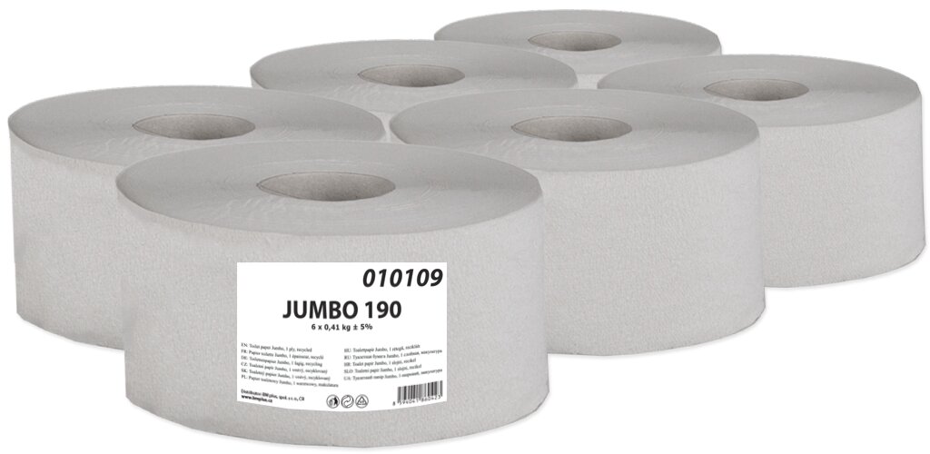 PrimaSoft Jumbo toaletní papír 190 mm, 1 vrstva, recykl, návin 120 m - 12 ks