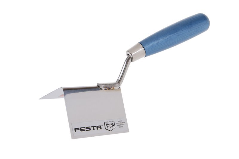 Narożna wygładzająca łyżka nierdzewna FESTA 80 x 60 x 60 mm z drewnianym uchwytem. Łopatka narożna (kątowa) wykonana jest z wysokiej jakości stali nierdzewnej o grubości 1,0 mm, uchwyt jest drewniany z lakowaną powłoką. Szpachelka służy do obróbki i wykańczania zarówno zewnętrznych, jak i... przeczytaj całość