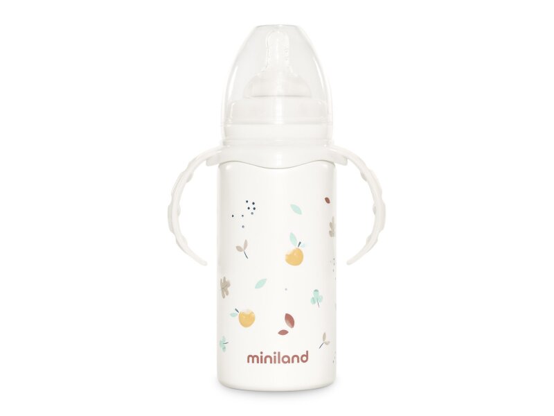 Kojenecká termoláhev Miniland se savičkou je vyrobena z vysoce kvalitní dvoustěnné oceli a díky tomu udrží déle nápoj teplý nebo studený dle potřeby. Termoláhev s odnímatelnými držadly je potažena jemným materiálem pro příjemné uchopení. Uvnitř láhve je ryska v mililitrech pro snadné určení objemu nápoje. Víčko chrání savičku hygienicky čistou.