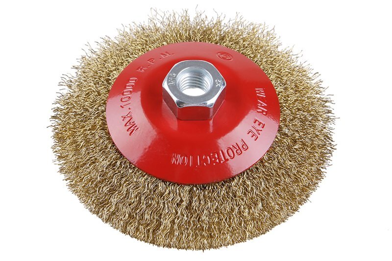 Rotační kartáč - miskový, kartáč FESTA zaručují kvalitní použité materiály i zpracování, vlnitý drát - pomosazený 0,3mm, průměr 125mm, uchycení M14*2, počet drátů 1800, maximální otáčky za min. 12500, použití : pro odstranění rzi, barvy, leštění . Instruktážní video przeczytaj całość